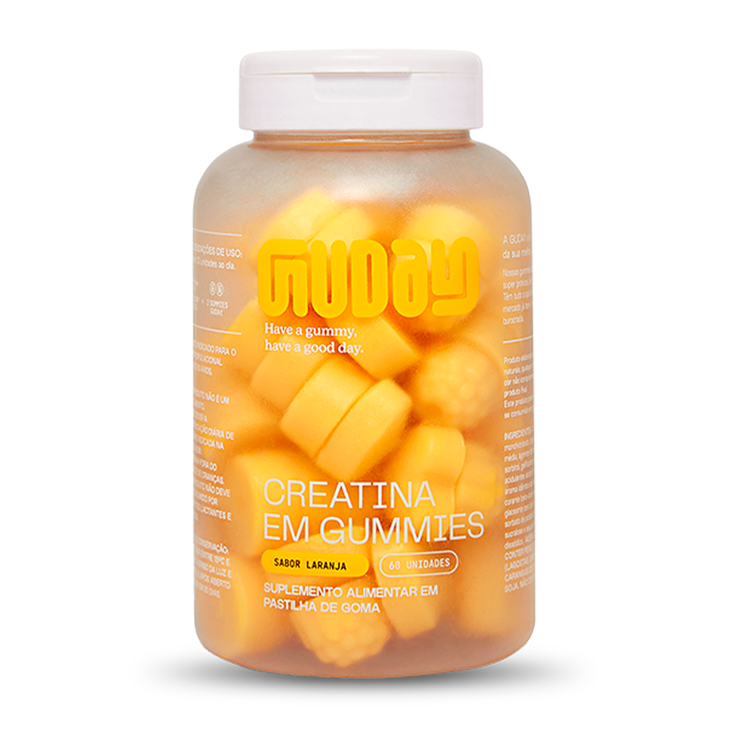 A Guday é a melhor amiga da sua melhor versão. Nossas gummies de creatina são super práticas, além de saborosas. Temos tudo o que a creatina em pó já tem – menos as partes ruins. 🧡